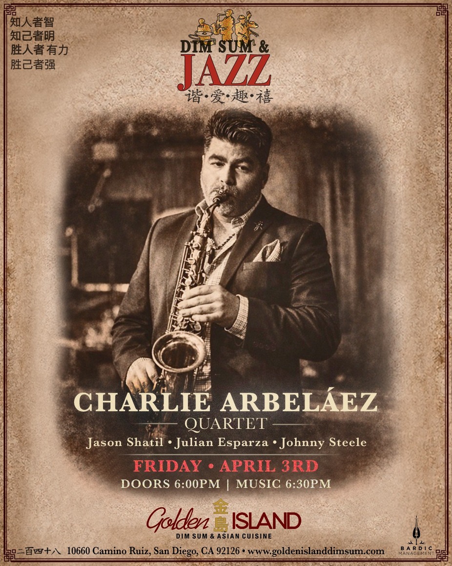 Friday, April 3, 2026 6:30 PM 8:30 PM Golden Island Dim Sum & Asian Cuisine (map)The multifaceted musical force Charlie Arbelaez was born in Brooklyn, NY. Charlie shared the stage with many notable local jazz artists, including: Arturo Sandoval, Ira Sullivan, and Nestor Torres. When he graduated from South Plantation High School, he was the recipient of the top scholarship award from The Gold Coast Jazz Society.